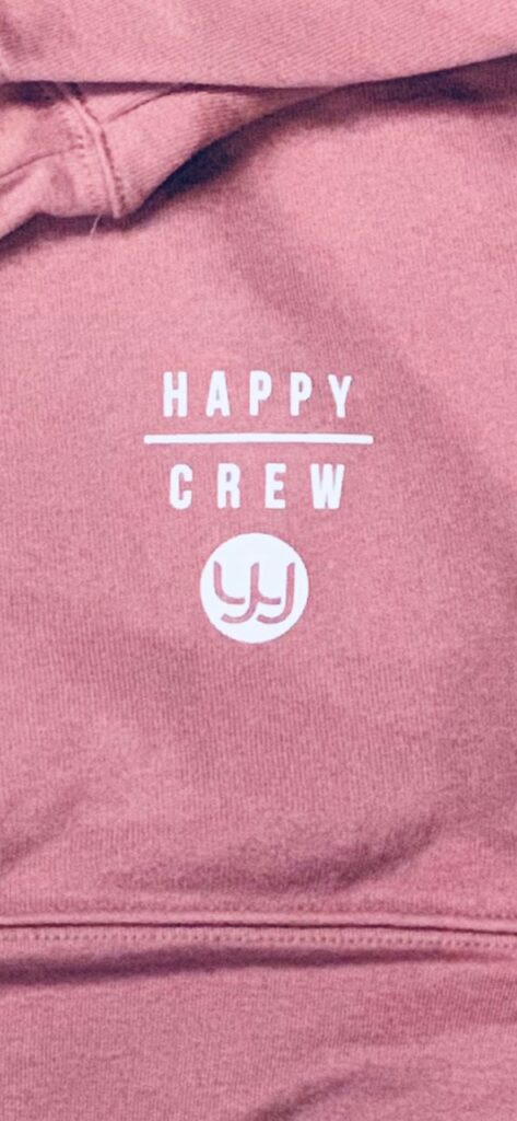 Power your happy with our happy crew hoodie. This hoodie will make you and your Yoga crew smile even on the coldest days.